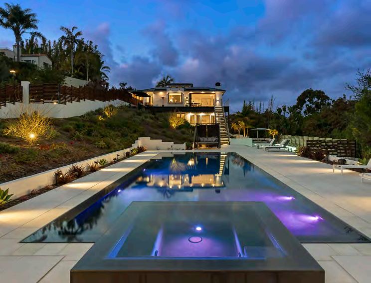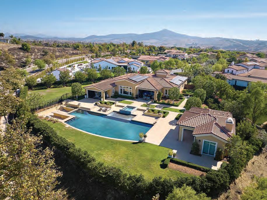 This single-story home in the exclusive guard-gated Santaluz community features sweeping panoramic 270-degree views throughout. Resting at the end of a private road, this modern home o ers maximum privacy. Enjoy an open floorplan with high vaulted ceilings, chef’s kitchen, Wolf and Sub-Zero appliances, paid solar & Tesla battery wall, 4-car garage, casita with private entry, grove of fruit trees, large interior courtyard, outdoor kitchen and infiniy edge pool/spa surrounded by rolling hills and mountains. Home is perfect for entertaining and one that you won’t want to miss!