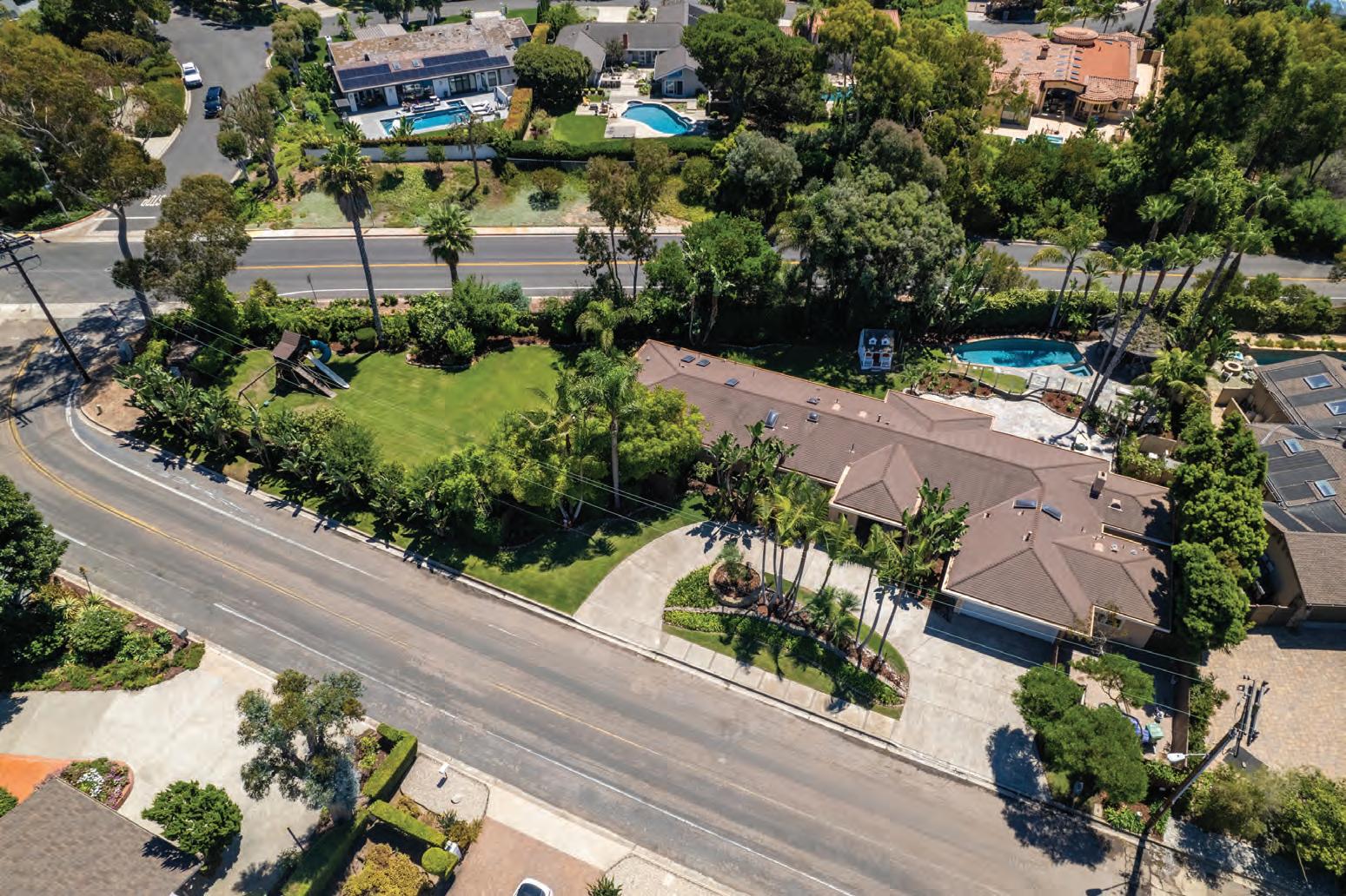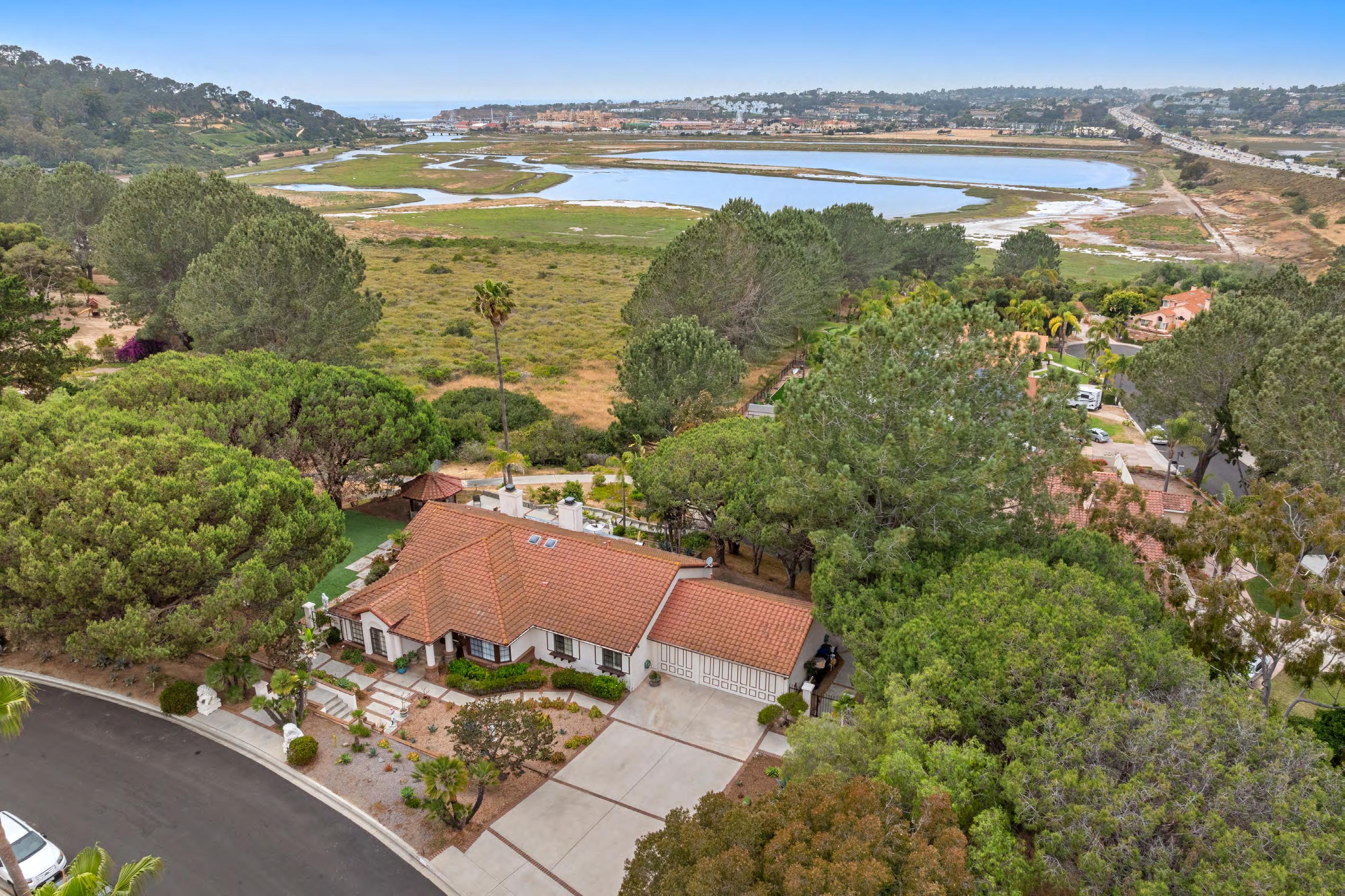 This charming single-story home rests atop a picturesque hillside at the end of a long driveway and sits at the end of a private cul-de-sac. Home is fully screened with mature growth specimen trees providing maximum privacy. Home features hardwood floor, a recently remodeled kitchen, detached guest house, garden with raised planter beds for a true farm to table experience, and an impressive oversized lawn. Located in the highly desirable Hacienda Santa Fe neighborhood of Rancho Santa Fe, this home has it all!