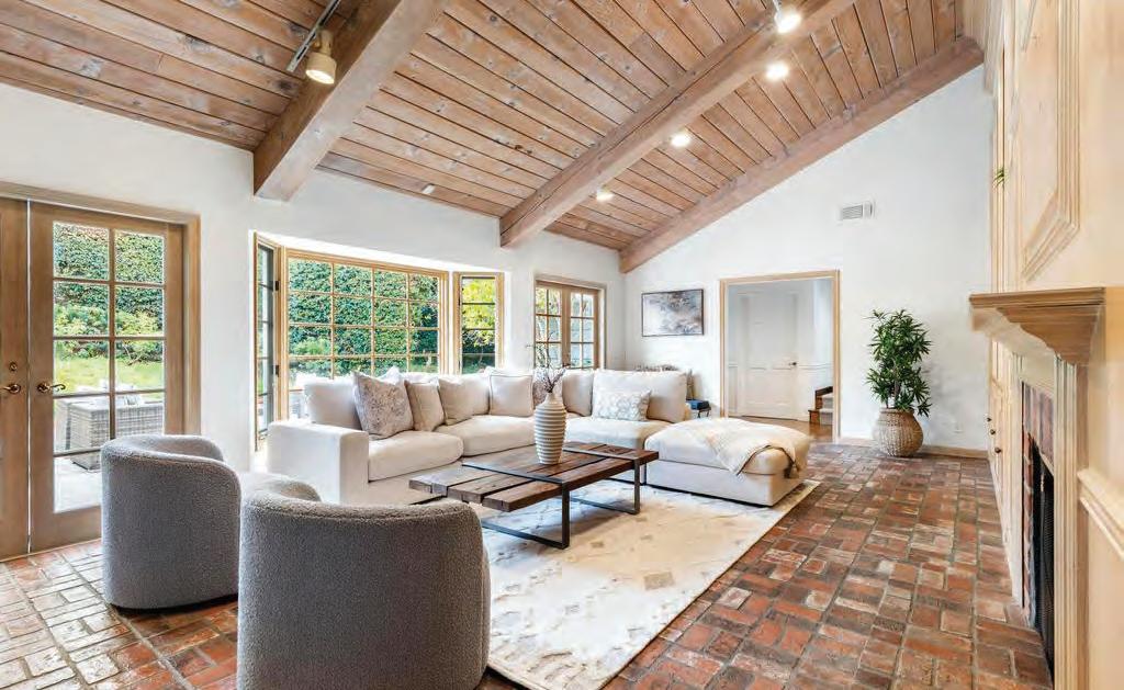 “The grandeur unfolds as you enter the foyer, revealing the great room’s soaring 25-foot ceiling accentuated by massive wood beams.” GLORIA SILVEYRA-SHEPARD