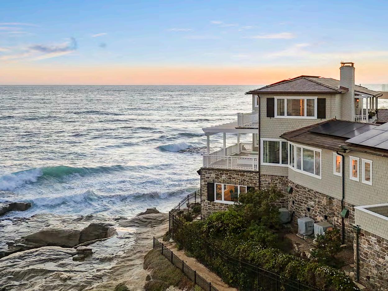 Forever views from one of the most exclusive lots in Pacific Beach, where coastal luxury meets serene privacy. This custom built 5 bedroom, 4.5 bath estate, rests atop an elevated and beautifully manicured 0.49 acre parcel, offering unobstructed 180 degree panoramic ocean views from every room. Beyond the private gated entrance, you’ll find yourself in a secluded tropical oasis, meticulously designed for both elegance and relaxation. This expansive 4,546 sqft trophy home was built in 2004 and boasts a sophisticated yet functional layout with no wasted space, perfect for modern living. The home features an array of luxury amenities, including a 3-car attached garage, 20 foot ceilings, hydraulic elevator, gourmet kitchen, generous sized rooms, split-face stone exterior, 3 fireplaces, surround sound speakers, owned solar system, and a private pool with spa. Entertain in style with the custom built-in BBQ and firepit, while enjoying breathtaking sunsets and dazzling city lights every night from your own backyard. This Pacific Beach luxury estate offers a rare blend of quality craftsmanship, abundant square footage + lot size, privacy, and sensational views, creating a truly one of a kind living experience.