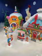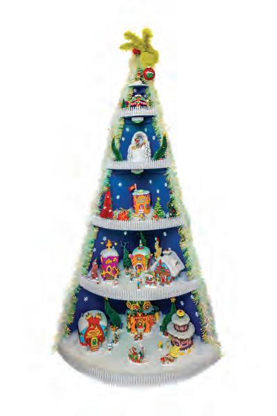 How the Grinch Stole Christmas has animated sound on two ornaments, that are motion activated. Display is a corner display shelf that stands 6 feet tall and has 6 levels. Comes with remote control for all Department 56 houses and also a remote-control light above each shelf. There are over 35 individual items included in this display. $700