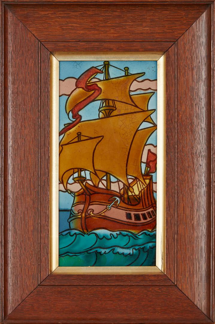 (ATTRIBUTED DESIGNER) FOR CLAYTON & BELL ‘SCIENCE’: GOTHIC REVIVAL STAINED GLASS PANEL, CIRCA 1865 painted, stained and leaded glass within later pine frames with brass strengthening bar 86cm square; with frame 94.5cm square £3,000-5,000