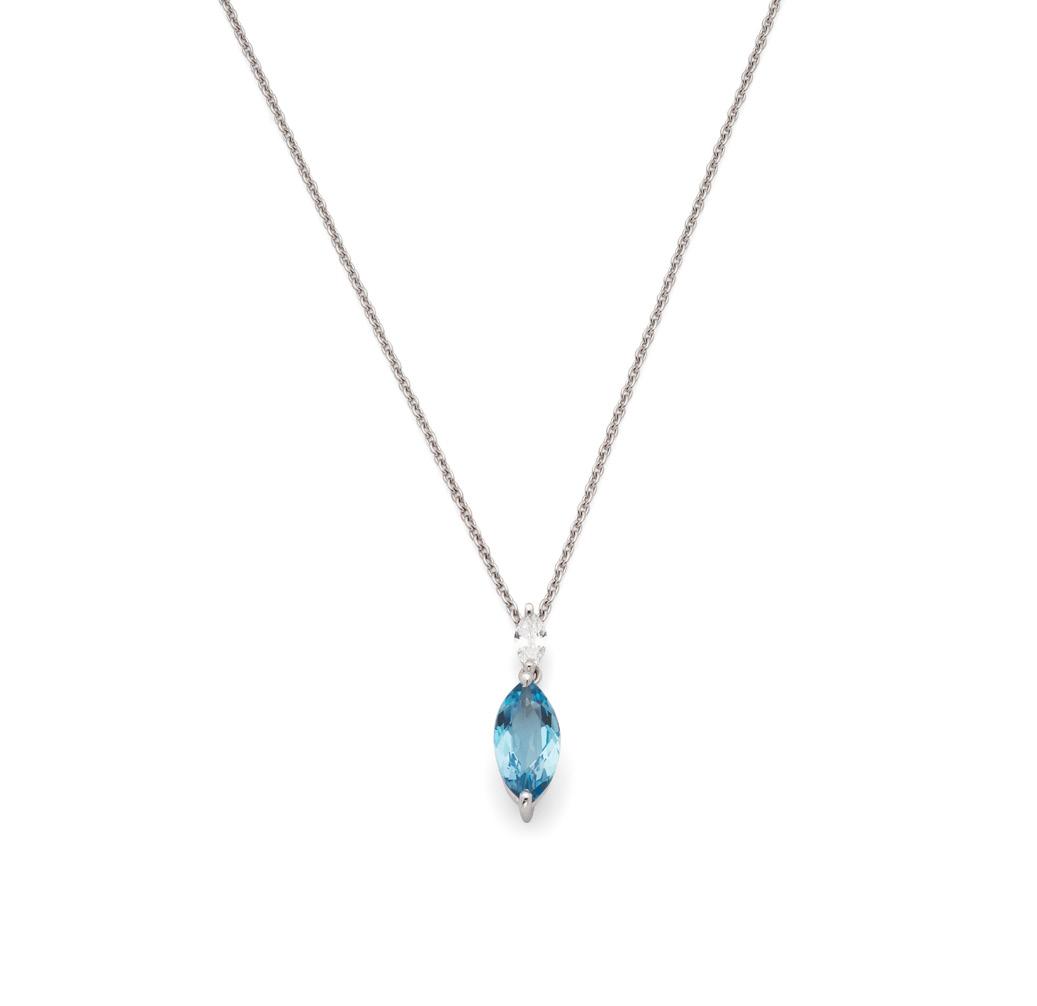1 † AN 18CT WHITE GOLD SAPPHIRE AND DIAMOND PENDANT NECKLACE