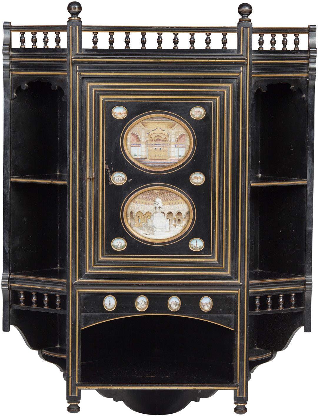AESTHETIC MOVEMENT MUSIC CABINET, CIRCA 1870