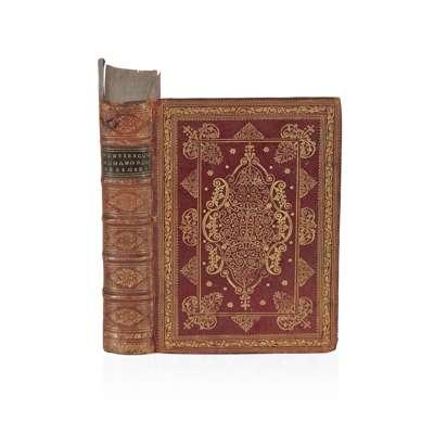 London:HumfreyLownes and Robert Young, 1629 First edition, folio (33 x 22.5cm), engraved title-page, woodcut portrait of Parkinson to **6 verso, woodcut of garden design and 109 full-pagebotanicalwoodcuts, 19th centurypaneled calf gilt byRoger deCoverly, endpapers and flyleaves renewed, upper cover neatlydetached, occasionaldust-soiling