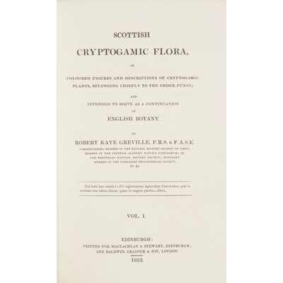 Or, coloured figures of British Plants… London:printed for theAuthor, byJ. Davis, and sold at No 2 Mead Place, near theAsylum;byMessrs White , 1790-1814 [and 1881-1849:4 supplementaryvolumes]. 39 volumes in 20, coloured plates, modern green half morocco, somefoxing and darkening in places, occasionaloffsetting (20)