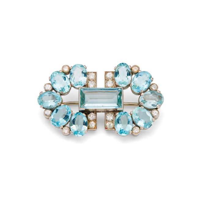 CARTIER: AN AQUAMARINE AND DIAMOND BROOCH
