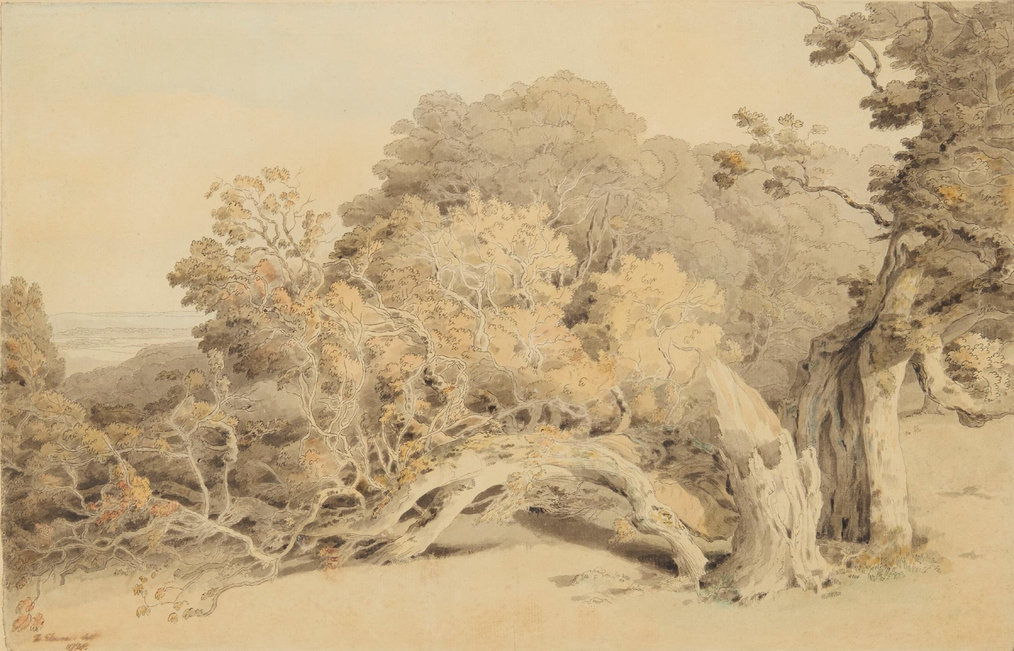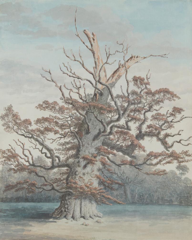 Hugo’s dedication to the arts was only equalled by his love of nature. He spent countless hours hiking through the countryside of Scotland, taking particular delight in the many ancient trees around his home in the Scottish Borders. He planted trees all over his estate, commissioned a number of artists to make arboreal works and purchased many pictures of trees, spanning four hundred years of art history, which he hung together, like little vertical forests, on the walls of his sitting room. The highlight of this collection is undoubtedly Rembrandt’s 1643 etching The Three Trees, widely considered to be one of the artist’s greatest landscapes.