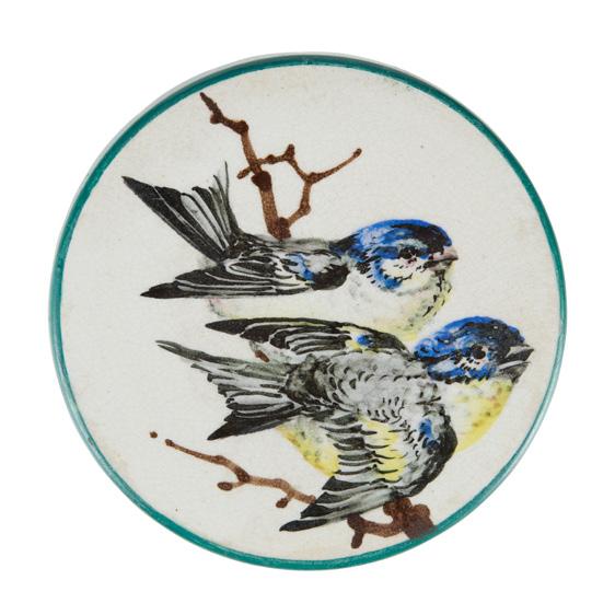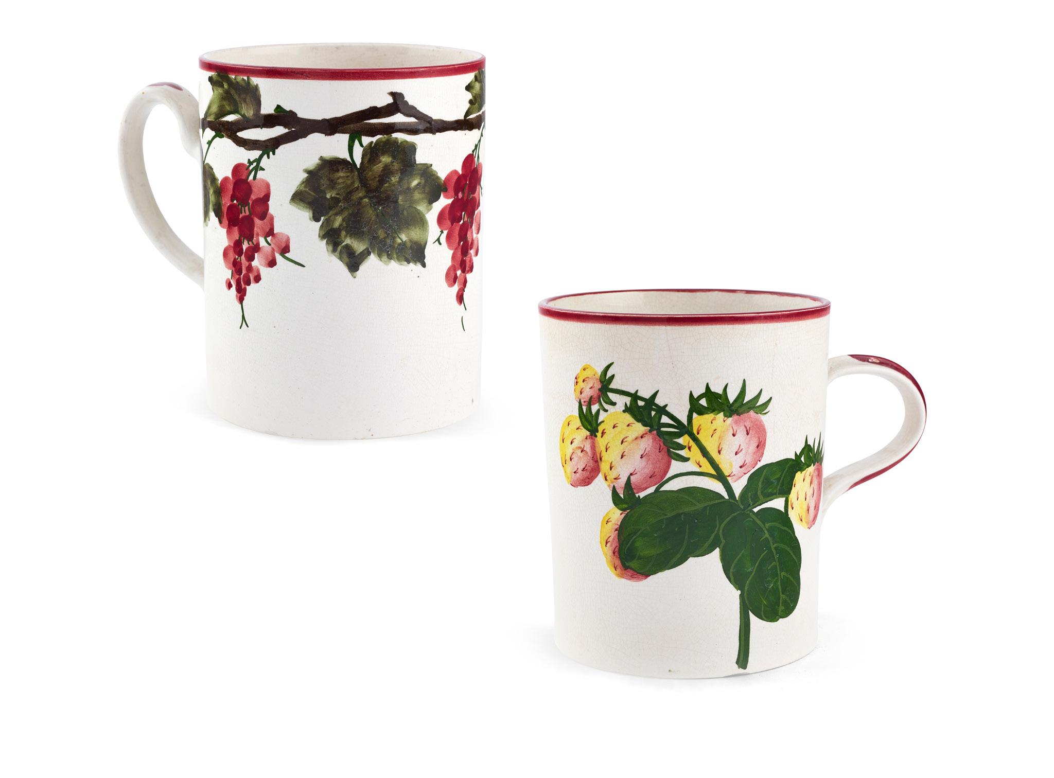glazed earthenware, comprising; a ‘BUTTERCUPS’ example, impressed maker’s mark WEMYSS, blue printed T Goode & Co. retailer’s mark, bears a Rogers De Rin label; a ‘SWEET PEAS’ example, probably painted by David Grinton, impressed maker’s mark WEMYSS, blue printed T Goode & Co. retailer’s mark, green painted WEMYSS; a ‘CLOVER’ example, impressed maker’s mark WEMYSS (3)
