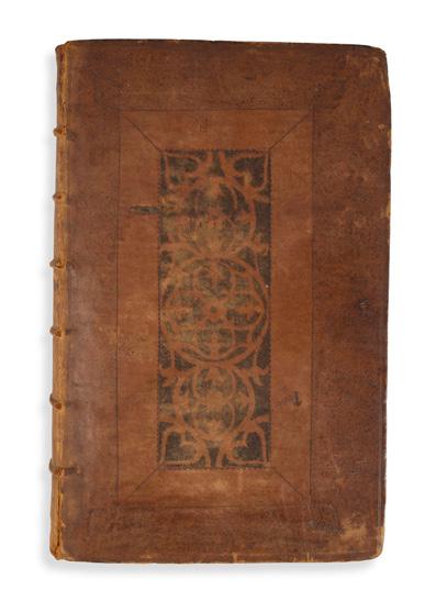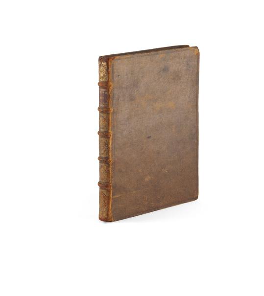 cum enumeratione linearum tertii ordinis. London: ex officina Pearsoniana, 1711. 4to in half-sheets (23 x 17.4cm), contemporary calf, red morocco label, decorative blind panels to covers, edges sprinkled red, [14] 101 pp., engraved vignette by J. Nutting to title-page, 2 engraved folding tables by John Senex, engraved table by Senex in the text (p. 62), each part (4 in total) with engraved headpiece, tailpiece and initial, woodcut head- and tailpieces and initials elsewhere, type-ornament headpieces, engraved diagrams in the text at pp. 75-87 and 97, binding slightly rubbed, a little marginal spotting, rear free endpaper with small section excised from lower outer corner [Babson 207-8 (207 being bound with other works); Wallis 293] £40,000-60,000