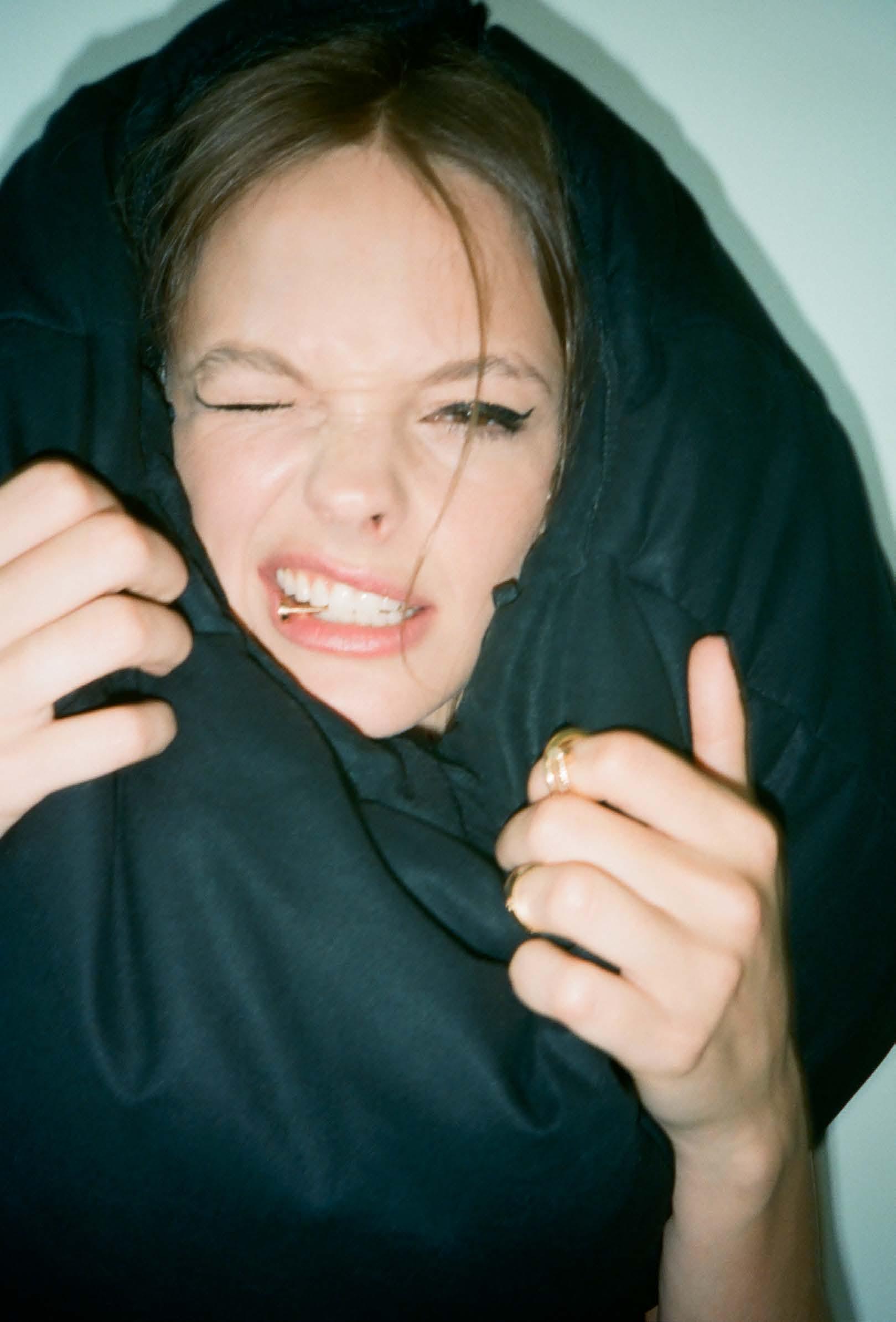 Anillo Juste Un Clou: CARTIER Falda: KENZO En piel y ojos, base de maquillaje Very Valentino, sombra de ojos Color-Flip Eye Palette, máscara de pestañas Magnificent y delineador de ojos Twin Liner: VALENTINO BEAUTY