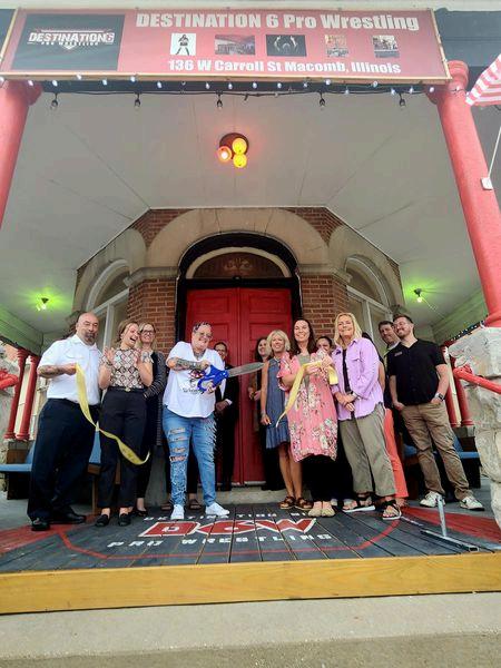 The Ambassador Committee of the Macomb Area Chamber of Commerce held a ribbon cutting on July 16 to welcome Destination Six Pro Wrestling as a brand new Chamber member. Housed in a former church located at 136 W. Carroll St., Cece Impact and family have renovated the space to include a full wrestling ring and made it their mission to provide action-packed entertainment to locals and visitors of all ages. The much-anticipated July 20 NO TURNING BACK X event was sold out to a crowd of 180 fans. For upcoming events and more, follow Destination Six on Facebook/Instagram.