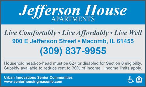 WESLEY VILLAGE RETIREMENT CENTER 1200 E. GRANT ST., MACOMB. 6-8 PM