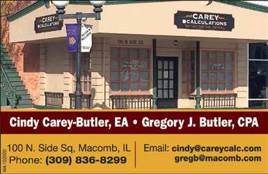 58 • 309.837.4855 • www.macombareachamber.com @NO PLACE LIKE HOME High Quality, Unique Items & BrandsHome Decor, Jewelry, Clothing, Garden Accessories, Coffee & Much More! 421 W. Jackson St., Macomb • 309-833-1150 MACOMB • GALESBURG • KEWANEE (309)833-4133 (309)343-8692 1-800-245-2259 LET JODI HELP YOU DESIGN THE PERFECT MEMORIAL FOR YOUR LOVED ONE Find a Business - Category 811 SOUTH LAFAYETTE • MACOMB 309-833-2704 • EVERLYHOUSE.COM NO CONTRACTS! STAY LONG OR SHORT TERM Not For Profit AMENITIES • 24/7 On-Site Staff • Furnished Rooms/Suites • Weekly Housekeeping • Laundry/Ironing • Daily Activities • Outdoor Patios/Gazebo • Waterfall and Koi Pond • Live Music and Gardening • Utilities and Cable Television • 3 Home-Cooked Meals Daily • Individually Controlled Heat and A/C • Beauty Shop On-Site • Library/Activity Rooms • Emergency Call System • Everly House Van for Special Trips • City Bus Service at the Door • Assigned Parking Spaces SAFE AND SECURE LIVING YOU’LL FEEL RIGHT AT HOME WITH US! 811 SOUTH LAFAYETTE • MACOMB 309-833-2704 • EVERLYHOUSE.COM WINTER MOVE-IN SPECIAL! WITH OUR SAFE AND SECURE LIVING, YOU’LL FEEL RIGHT AT HOME WITH US! Your Source for Local Print and Digital Marketing Solutions (309) 833-5534 x 227