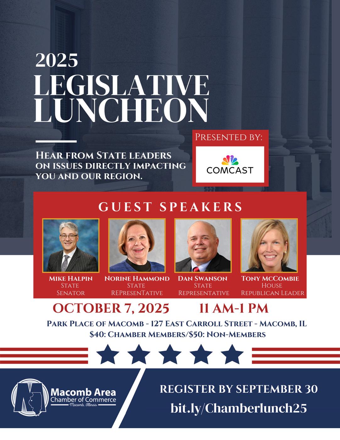 Now is the time to sign up for our annual Legislative Luncheon on October 7 at Park Place. Registration and sponsorship information is included in the newsletter. This is one of our largest attended events of the year, and we look forward to another great turnout to meet and communicate directly with our legislators. Please register early, as over 120 people attended last year, and we would love to surpass it.
