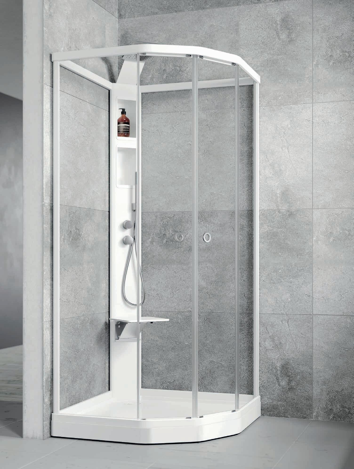 Det finns en Spirit för alla badrum. Med sina rena linjer och stora glasytor passar Spirit in överallt. Väggar och dörrar kan enkelt anpassas och snedkapas utifrån måtten i ditt badrum eller skräddarsys helt efter dina önskemål.