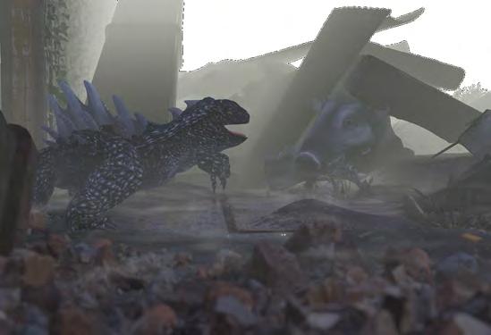 This exploration considers the Rhynchocephalia Sphenodon Punctatus – also known as the Tuatara – in the Post-anthropocene condition of Auckland, New Zealand. Greed-driven tech giants have harnessed the magnetic power of supercritical water deposits beneath the earth’s crust surrounding New Zealand, but this results in a pressure imbalance that causes a series of seismic earthquakes and tsunamis that bring the mainland infrastructure crumbling down. The presence of human life in Auckland has been eliminated, and a warm and dense fog-covered environment leaves remaining life to adapt, or fall victim to natural selection. The lowvisibility environment has displaced the Tuatara’s habitat, forcing them to use their burrowing capabilities on the artificial built environment – the new ‘natural’. This new habitat exists at both the macro scale of the architecture, and the micro scale of the piles of rubble that they are forced to inhabit. This project considers the aging and mating process of the Tuatara, from copulation, to embryo, infant, youth, and adult. It considers the necessary and most appropriate size, colour, texture, and thermal exposure components of morphology for each phase of its development, in an attempt to maximize the species’s chances of survival within the Post-anthropocene.
