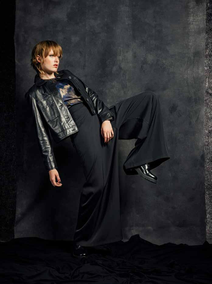 Die neue Modesaison startet avantgardistisch mit edgy Looks, dunklen Jeans, Leder und Statementprints.