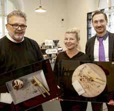 Unter dem Motto „Kunst verschwundener Meisterwerke“ lud Ideenfabrikant Reini „HalliHallo“ Eberhart im Rahmen des alljährlichen Faschingweckens ins Kärnten Museum nach Klagenfurt. Die Bilder von verzehrten Speisen begutachteten: LH Peter Kaiser, BÖF-Landespräsident Bruno Arendt und Künstler Gerhard Fresacher.