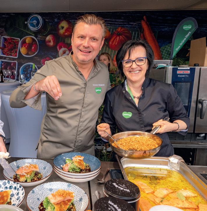 Haubenkoch Christof Widakovich und Sylvia Loidolt, Vorsitzende-Stv. Erlebnisregion Graz, im Genuss-Einsatz