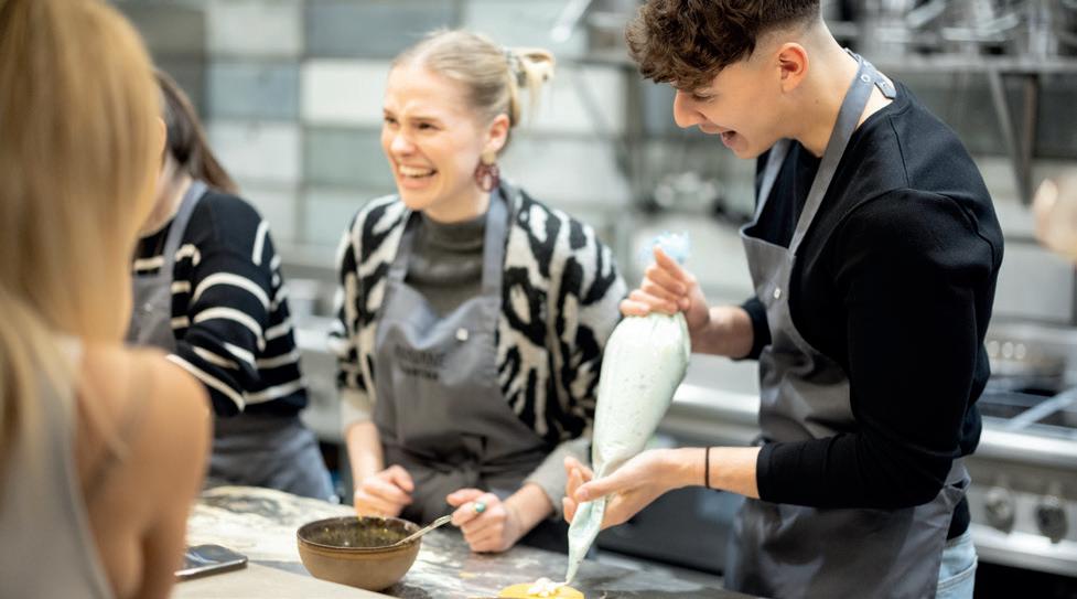 Die Journalist:innen sind bereit für den Kochabend im Arravané.