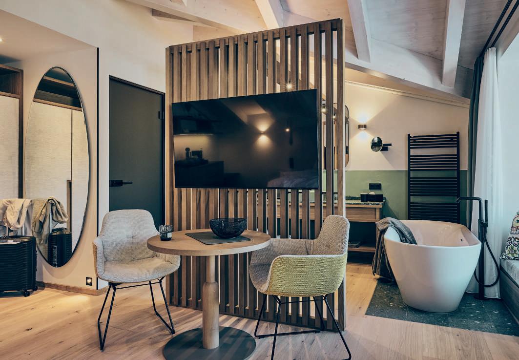 Architektur & Authentizität. Das Architekturbüro Art Domus hat ein Konzept geschaffen, das Vergangenheit und Zukunft verbindet. Mit dem Hotel Recort ist ein Refugium entstanden, das Geschichte bewahrt und modernen Komfort bietet. Ein Ort, an dem Gäste die Dolomiten intensiv erleben und unvergessliche Momente sammeln können.