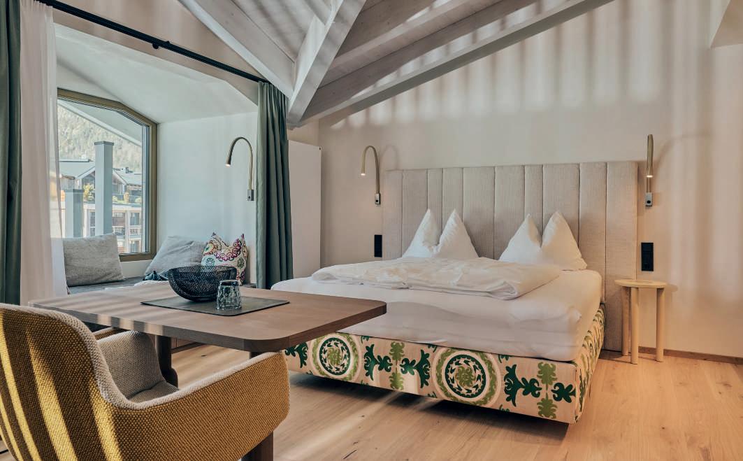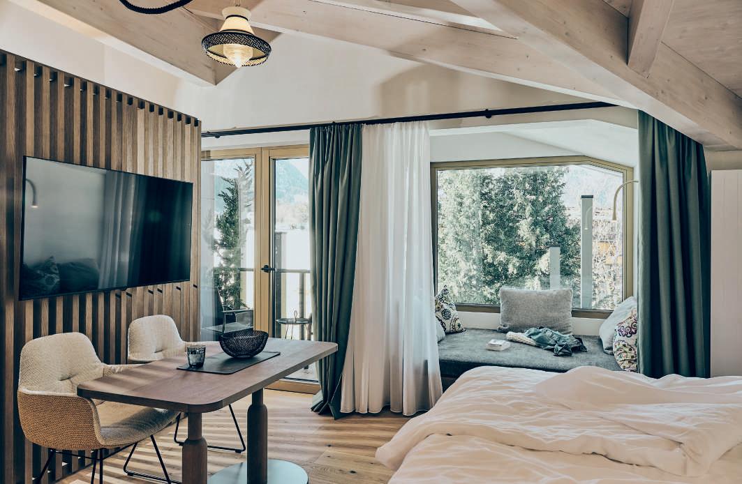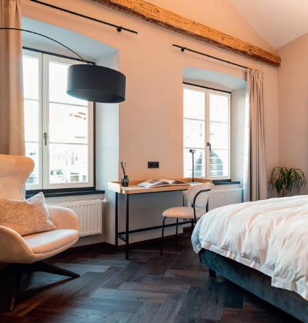 Stille & Stil. Tradition und moderner Luxus bestimmen das Ambiente. In den neu gestalteten Zimmern und Suiten dominieren sanfte Farbtöne und natürliche Materialien. Großzügige Fensterflächen bringen Licht und Weite in die Räume. Warme Farben und gerundete Formen sorgen für Geborgenheit und Gemütlichkeit.
