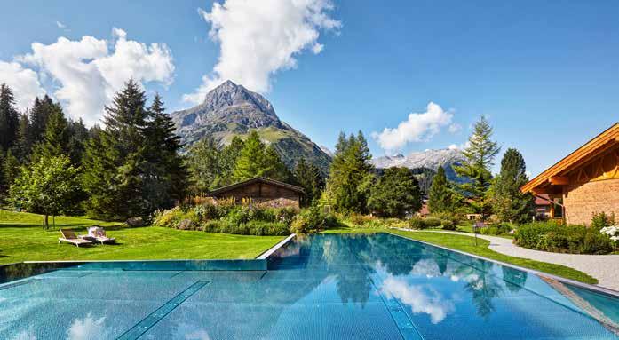 Der Berghof in Lech ist eine charmante Mischung aus entspanntem WohlfühlJuwel und alpinem Stil. Dass diese feine Legende mit fantastischer Aussicht und allerfeinster Kulinarik ein angesagter Treffpunkt der Stunde ist, mag nicht neu sein. Aber jedes Jahr la ssen sich Isabelle und StefanBurger mit ihrem Team eine Neuheit einfallen, die es unbedingt wert ist, entdeckt zu werden. Letztes Jahr überraschten sie mit der modernen Revitalisierung des À-la- carte -Restaurants Marile. In diesem Sommer darf man auf den neuen Außenbereich gespannt sein. Dieser Ort des extravaganten Genusses und der Kreativität besticht durch seine unverhohlene Lebendigkeit. Ausgefallene Accessoires bringen die urbane Coolness und entspannte Leichtigkeit mit. Kunst ist dabei ein zentraler Akzent, nicht nur im Interieur, sondern auch in der fulminanten Küche von Rick Frank. Ein Refugium, einfach perfekt für eine Sommerfrische.
