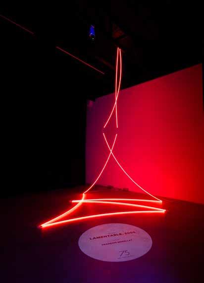 In über sieben Jahrzehnten hat »Zumtobel« die Lichtbranche entscheidend mitgestaltet: Durch neueste Technologien, den eigenen Designanspruch und Lichtlösungen, die sich stets an den Bedürfnissen von Mensch und Umwelt orientieren. Dabei war die Zusammenarbeit mit Künstlern und Architekten immer auch Schrittmacher für die technologische Entwicklung. Zum Jubiläum zeigt der »Lichtkunstpfad« im Lichtforum Dornbirn einen Querschnitt an Installationen und »Zumtobel Masterpieces«, darunter Sam Durant, Ólafur Elíasson, Zaha Hadid, Brigitte Kowanz, Daniel Libeskind, François Morellet (im Bild mit Lamentable, 2005), Miriam Prantl, James Turrell oder Ben Vautier. «