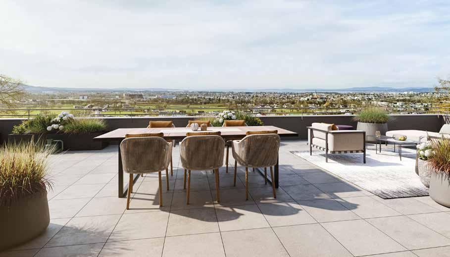 DDie exklusive Kleinwohnanlage Wolfurt Rutzenberg von Klimmer Wohnbau befindet sich in sanfter Hanglange, bildet eine harmonische Einheit aus Ästhetik, Komfort und Naturverbundenheit und präsentiert sich als Rückzugsort mit viel Lebensqualität. Jede der drei 4und 5-Zimmer-Wohnungen ist ein Statement für höchste architektonische und planerische Qualität. Offene Raumgestaltung, große Fensterflächen und durchdachte Grundrisse, die ein hohes Maß an Individualität erlauben, treffen auf edle Feinsteinzeug-Fliesen, geölte Eichendielen im Landhausstil, raumhohe Türen und hochwertige Sanitärausstattung der Marke Dornbracht. Im Außenbereich erweitern großzügige Terrassen den Wohnraum und schaffen eine wohltuende Verbindung mit der umliegenden Natur. Gleichzeitig geben sie den Blick frei auf das beeindruckende Panorama, das sich vom Rheintal über den Bodensee bis zu den Schweizer Alpen erstreckt. Das nachhaltige Energiekonzept mit Wärmepumpe und Photovoltaikanlage rundet die Wohnanlage perfekt ab. «