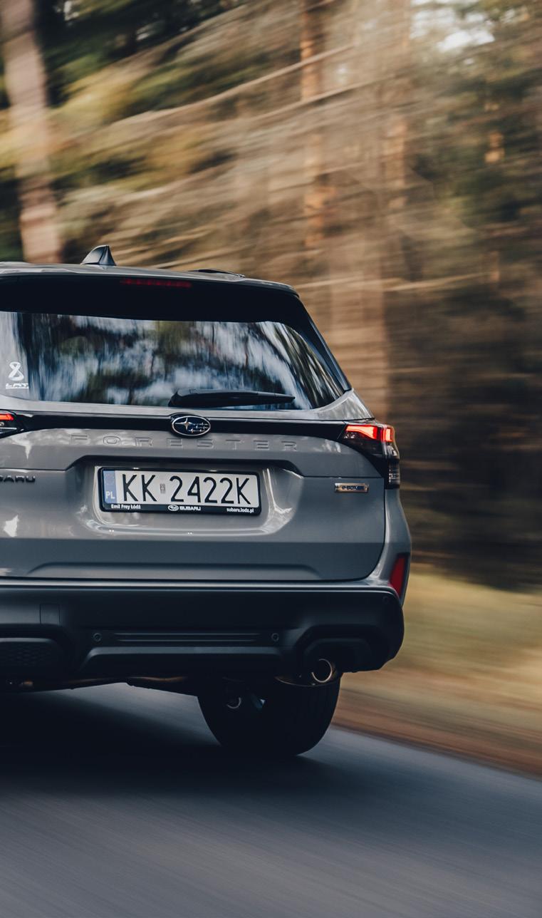 uznane za bezpieczne i spełniające oczekiwania rodzin, trafiając tym samym do zestawienia najlepszych samochodów rodzinnych. Wśród nich nie mogło zabraknąć naszego Leśnika. Pięcioosobowy Forester w spe cyfikacji 2025 uzyskał niedawno zaszczytny tytuł Top Safety Pick+ (TSP+) w testach przeprowadzo nych przez Insurance Institute for Highway Safety (IIHS). Samochód oferuje zestaw standardowych funkcji bezpieczeństwa, w tym wielokrotnie nagradzany system wspomagania
