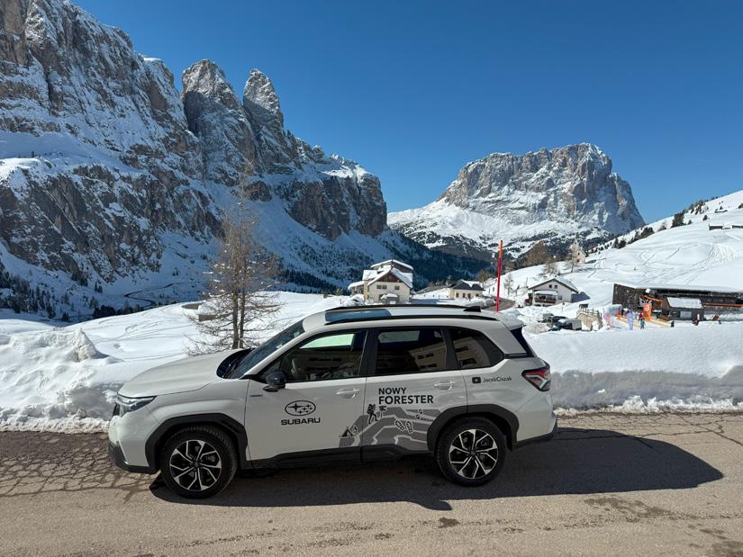 Prowadzenie samochodu było bezstresowe. Napęd działał płynnie, a ja miałem poczucie kontroli nad kierownicą. W trudnych warunkach nowoczesne systemy Forestera wspierały mnie w trakcie podjazdu, bez uczucia próby przejęcia kontroli. Skoro jesteśmy już na krętych alpejskich drogach, to kilka słów na temat stabilności pojazdu. Forester zbudowany jest na sztywnej platformie Subaru Global Platform. Setki pokonanych zakrętów pozwoliły mi na wyciągnięcie wniosków, że nawet przy dużym obciążeniu – cztery osoby, bagaże oraz wypełniony nartami box dachowy