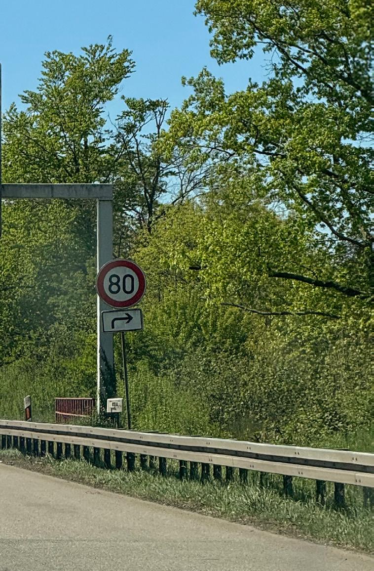 rowcy na zawężonych odcinkach znacznie przekraczają limity, siejąc niebezpieczeństwo. To nie zdarza się w krajach stojących cywilizacyjnie wyżej w historii motoryzacji. Potwierdzę to w dalszej podróży, choć mam w tej kwestii wieloletnie doświadczenie. W Austrii i Holandii takich przypadków nie doświadczymy. Bardzo rzadko zdarzają się one w Niemczech, częściej w Italii. Nawet w jej w północnych regionach zdarzają się tacy, którzy jak w Polsce czy Czechach za nic mają przepisy ogólne lub znaki ograniczające prędkość. Powoduje to niepokój na drodze, konieczność po -