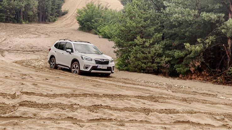 J.F.: Muszę przyznać, że jestem z tego modelu bardzo zadowolony. Miałem co prawda na początku drobne kłopoty z pierwszym eg zemplarzem. Jeśli natomiast cho dzi o wersję benzynową, to tutaj właściwie nie wiem, co znaczy słowo „problem”. Na bazie swojego doświadczenia mogę powiedzieć, że pozytywnie uderza mnie bez awaryjność tych aut. Kolejną bardzo istotną dla mnie kwestią są parametry techniczne Forestera. Mam tu na myśli między innymi duży prześwit, który jest niesa mowicie istotny zarówno podczas jazdy w terenie leśnym, jak rów nież polami. Zwykły śmiertelnik, który autem porusza się tylko po asfalcie, zapewne nigdy nie zwróci na to uwagi. Tymczasem dla mnie prześwit ma ogromne znaczenie. Za każdym razem, kiedy zjeżdżam z drogi asfaltowej i wjeżdżam na polną, między kołami pojawia się typowy wysoki garb. Koła cięż kich pojazdów rolnych i leśnych, które wcześniej przejeżdżały w tych miejscach, zostawiły bo wiem po sobie wyraźne ślady, za głębienia. Zwykły samochód o ma łym prześwicie raczej sobie tam nie poradzi, zawiesi się. Zadanie jest jeszcze trudniejsze do wyko nania, gdy dodatkowo leżą tam kamienie. Wtedy mamy pewność, że zahaczymy o nie miską olejową. Z Subaru to żaden problem. Oczy wiście zawsze w takich sytuacjach