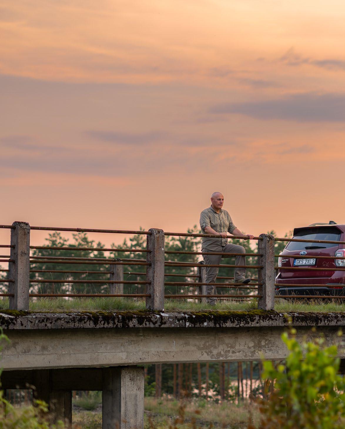 się tam zostać na dłuższą chwilę i wtedy traktuję samochód jak na miot. Rano rozkładam fotele i przy otwartym bagażniku delektuję się pachnącą kawą. Ten samochód zdecydowanie daje mi poczucie samowystarczalności i wolności. Zawsze towarzyszy mi poczucie, że wyjechałem z całym domem. W Foresterze wożę też narzędzia, które mogą przydać się w razie jakichkolwiek niespodzianek. Sie kierka, piła, szpadel – to wszystko mieści się w bagażniku, w tym samym miejscu, gdzie znajduje się koło zapasowe.