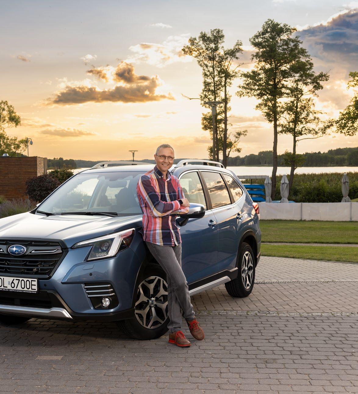 pierwszy, była niesamowicie zadowolona i powiedziała: „Jak fajnie mi to wszystko ustawiłeś, nawet moją ulubioną muzykę!”. Była zachwycona nowym Subaru i tym, że mogła posłuchać piosenki „Wszystkie drogi prowadzą do Mrągowa” naszego kolegi Cezarego Makiewicza, który zawsze otwiera i zamyka mrągowski Piknik Country. Moja żona również lubi tradycyjne CD, nie przepada natomiast za słuchaniem muzyki z telefonu. Muzyka poniekąd nakierowała nas na Forestera. Otóż, nasz kolega Janusz Ciepliński, który jest dyrektorem Filharmonii w Olsztynie i jednocześnie muzykiem, chwilę przed nami również kupił ten właśnie model Subaru. Kiedy odwiedził mnie w firmie, miałem okazję przejechać się z nim jego samochodem. On też cieszył się możliwością odtwarzania w nim tradycyjnych płyt CD. Dwa tygodnie później odbierałem już nasz nowy samochód.