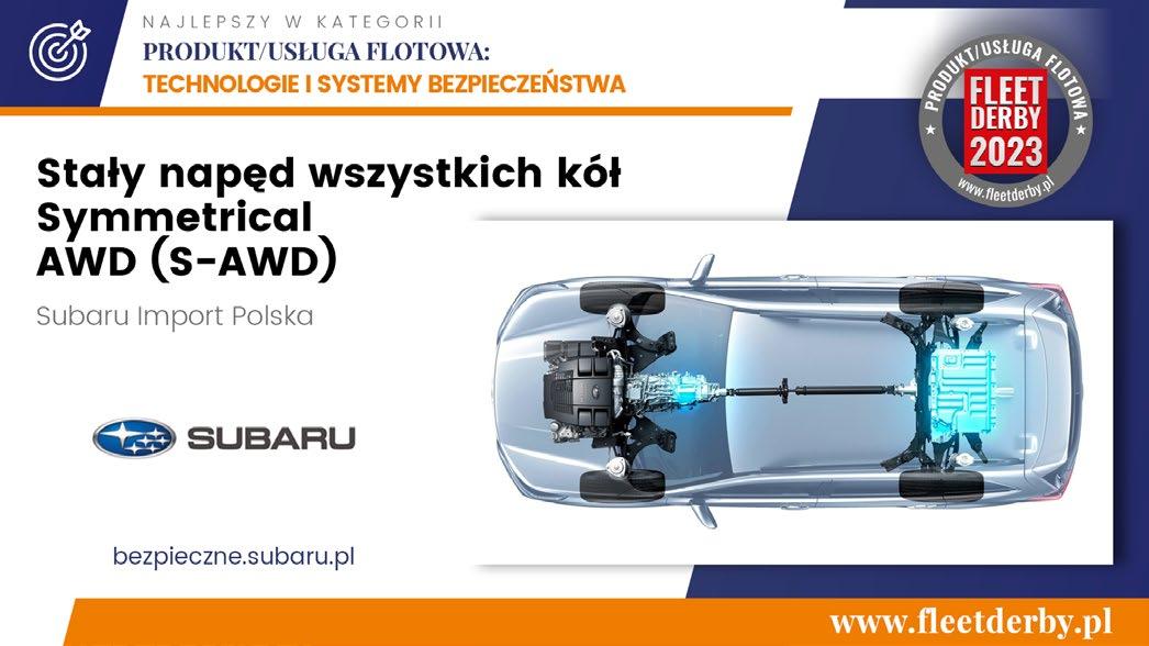 W tegorocznej edycji plebiscytu przyjęto aż 150 zgłoszeń z 67 firm. Głosowanie odbywało się on-line za pośrednictwem strony www.fleetderby.pl i trwało niemal siedem miesięcy. Łącznie oddano aż 250 000 potwierdzonych głosów. Nagrody przyznano w dziewięciu kategoriach: „Zespół Flotowy Roku”, „Eco Fleet Manager Roku”, „Ekomarka Flotowa”, „Motoryzacyjna Marka Flotowa”, „Mobilność”, „Ładowarki i Sieci Ładowania”, „Technologie Cyfrowe dla Flot”, „Profesjonalne Wsparcie Sprzedaży Flotowej” oraz „Produkt/Usługa Flotowa”. Przypomnijmy, że dwa lata temu we Fleet Derby wyróżnienie otrzymał nasz system wspomagania kierowcy EyeSight. Rok wcześniej nagrodzono natomiast SJS Driving Academy, która wywodzi się ze Szkoły Jazdy Subaru. Akademia SJS otrzymała wówczas tytuł najlepszej szkoły bezpiecznej jazdy, pokonując spore grono rywali. Również w tym roku akademia zwyciężyła w kategorii „Profesjonalne Wsparcie Sprzedaży Flotowej” w podkategorii „Profesjonalne szkolenia z zakresu bezpiecznej i eco-jazdy”.