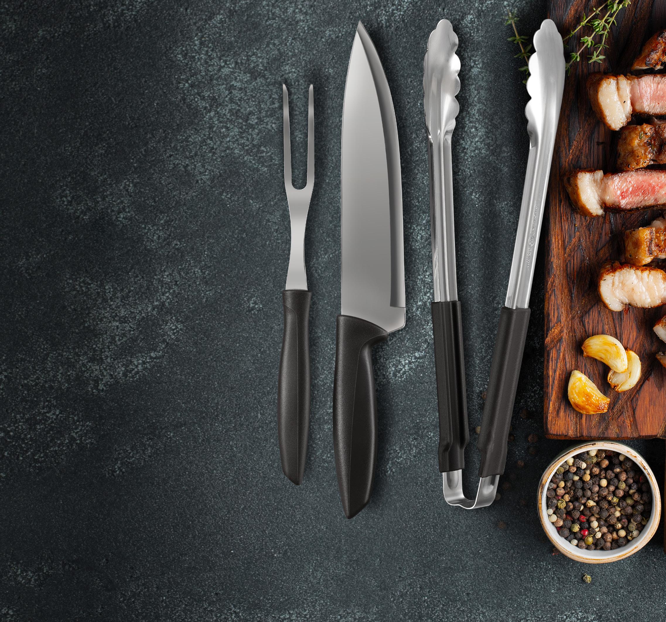 / No otorga Puntos ni VDN. **Precio Exclusivo Socio*. *Se entiende por Socio* al Distribuidor Independiente de Oriflame. ¡TODOS LOS SOCIOS* PARTICIPAN EN ESTA PROMOCIÓN! GANAR INCREÍBLES PREMIOS! ¡DATE LA OPORTUNIDAD DE ¡Prepara la carne asada! Kit de productos cómodos y ergonómicos para las reuniones familiares. CUCHILLO 30 cm de largo TENEDOR 25 cm de largo PINZA 29 cm de largo