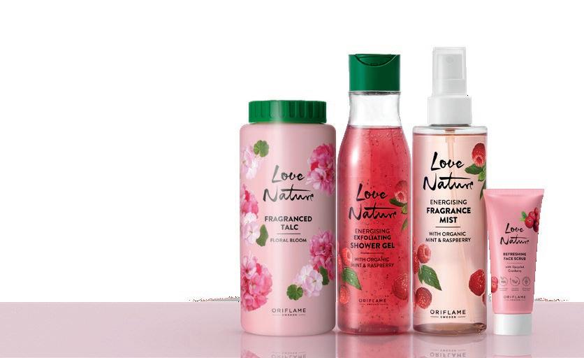 Ingredientes de Origen Natural 95 + + + NUEVO NUEVO 12 13 LLEVA 4 PRODUCTOS A SOLO: Cód. 803168 Cód. 803168 SET ENERGIZANTE CELEBRA TU BELLEZA NATURAL Talco Perfumado Aroma Floral Gel de Ducha Exfoliante Exfoliante Facial Refrescante Fragancia Corporal Energizante El set incluye: 1 Talco Perfumado Aroma Floral Love Nature 100 g, 1 Gel de Ducha Exfoliante Energizante Love Nature 250 ml, 1 Fragancia Corporal Energizante con Menta y Frambuesa Orgánicas Love Nature 200 ml y 1 Exfoliante Facial Refrescante de Arándano Reciclado Love Nature 30 ml. Valorizado en: $ 399.90 Puntos: 17.48 $ 705.00