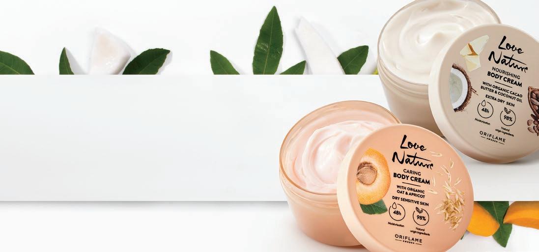 20 21 Crema Nutritiva para Cuerpo con Manteca de Cacao y Aceite de Coco Orgánicos Love Nature 200 ml 42991 $ 220.00 $ 159.90 Puntos: 6.99 Crema para Cuerpo Protectora con Avena y Chabacano Orgánicos Love Nature 200 ml 41262 $ 260.00 $ 159.90 Puntos: 6.99 CREMAS CORPORALES NUTREN E HIDRATAN LA PIEL EXTRA SECA DE DESCUENTO Hasta de Hidratación* Para codos, rodillas, manos y demás zonas resecas CREMA PROTECTORA 41262 CREMA NUTRITIVA 42991 *Clínicamente probado. 200 ml Mtnaace d e C a c a o y Ace ite de Coco OUTLET SUSTENTABLE 40 Aanev Cy h ba a c a n o %