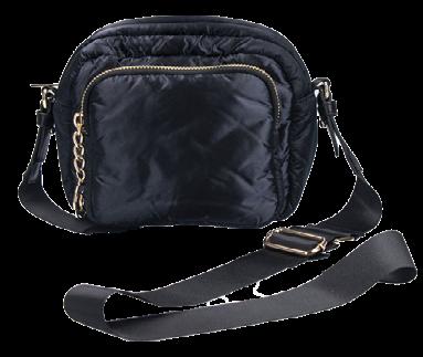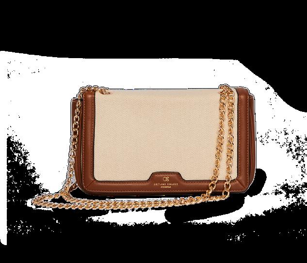 • Bolso cruzado fabricado en lona de algodón reciclado y poliéster • Adornos de piel sintética color marrón • Correa de cadena en tono dorado • Con bolsillos internos para organizar con estilo BOLSO CROSSBODY a solo CÓD. 45159 $299.90** NUEVA OPCIÓN