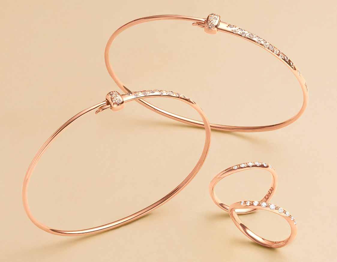 state tradotte dai designer e dai maestri orafi scultorei, che puntano tutto sull’oro rosa 9k e su vestibilità super easy.