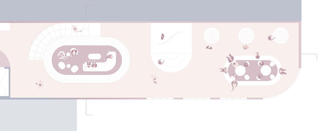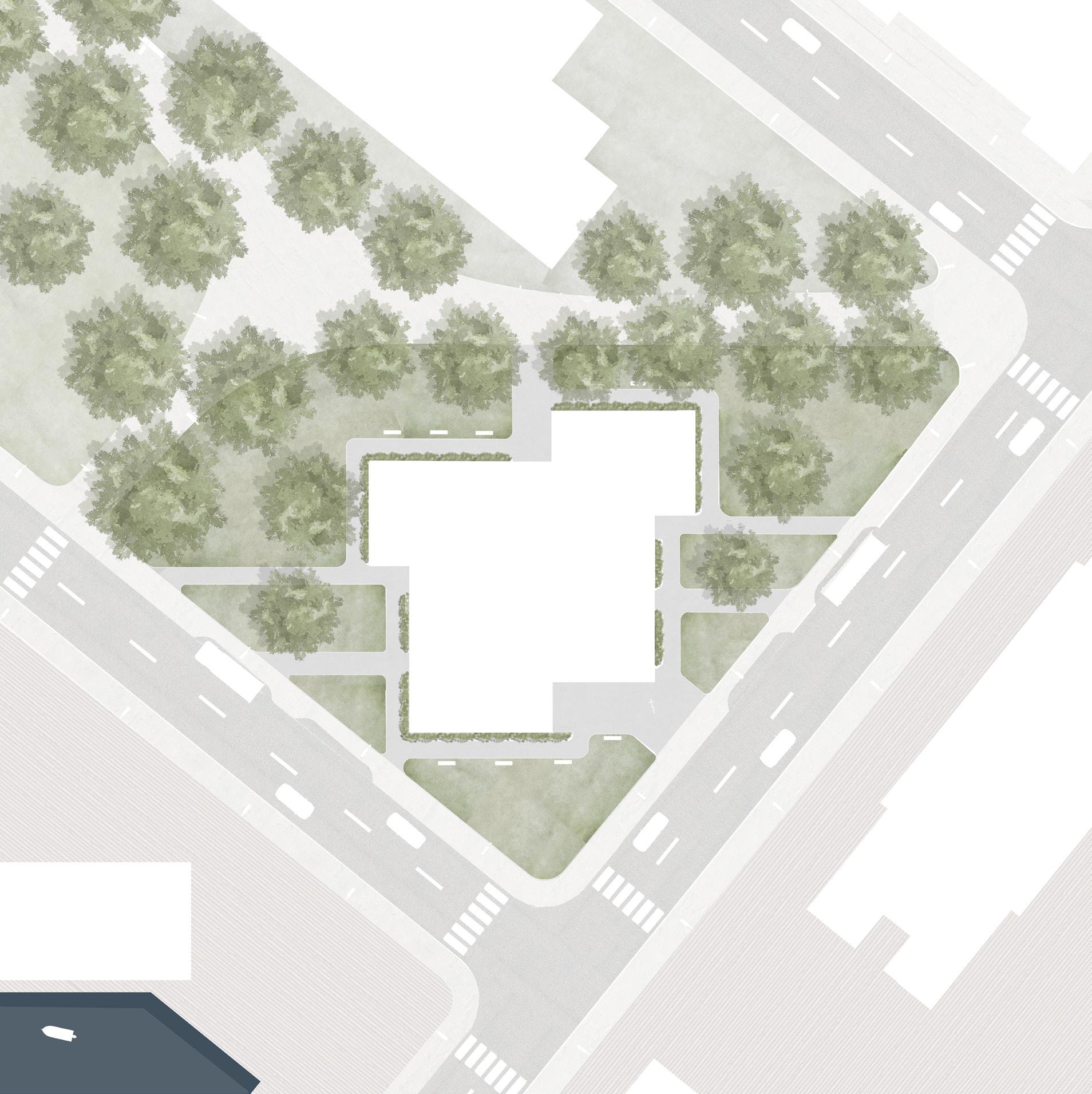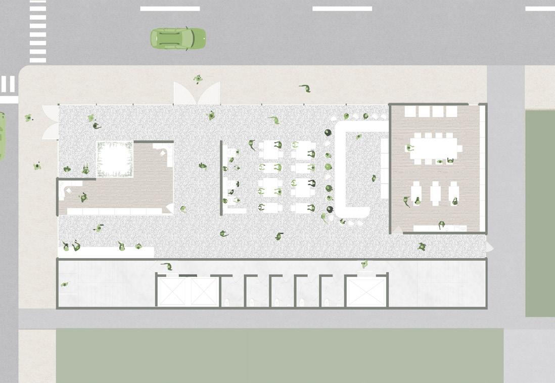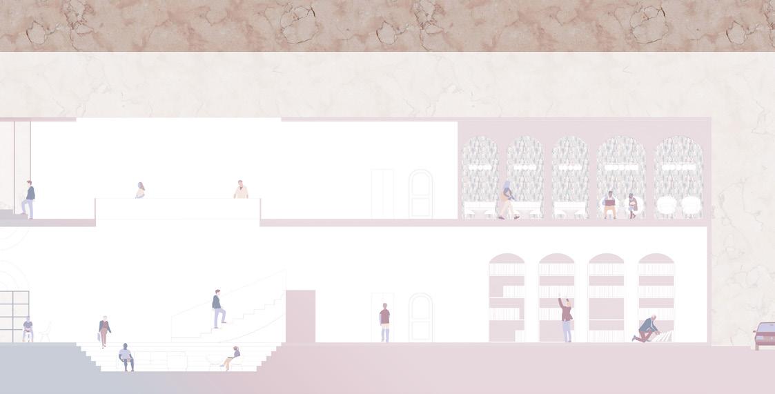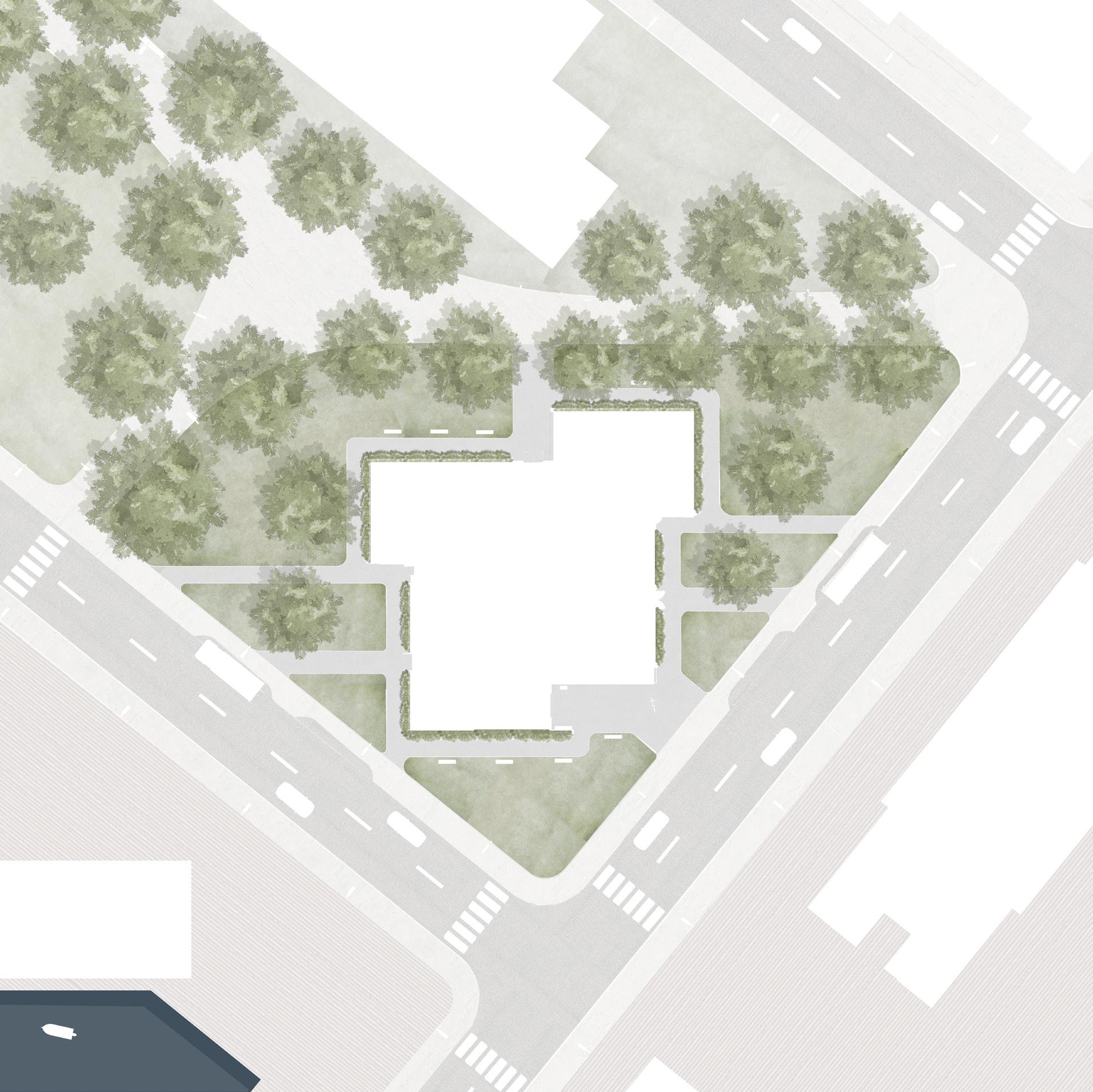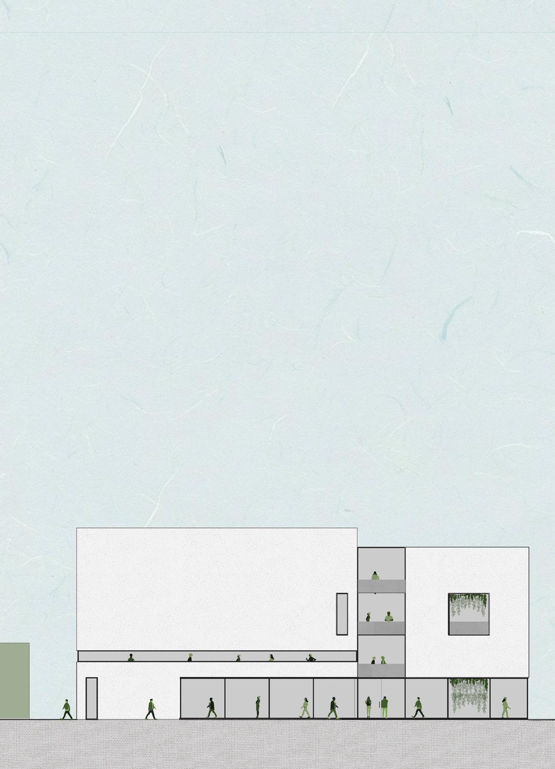 Cultivating Connectivity is a social infrastructure for Albany Park that generates a new typology of civic space centered on well-being activities such as gardening and fitness. A continuous, helical track wraps around a central open-air community garden, offering visitors an adventurous running or walking experience alongside panoramic views. The inclinced track reaches out toward the street, beckoning community members inside while compartments arrayed along its perimeter provide storage for a loanable inventory of garden tools, populating the building’s facade with a dynamic flux of content. With opportunities to attract neighbors with different interests and motivations. Cultivating Connectivity makes space for building new, intersectional relationships.