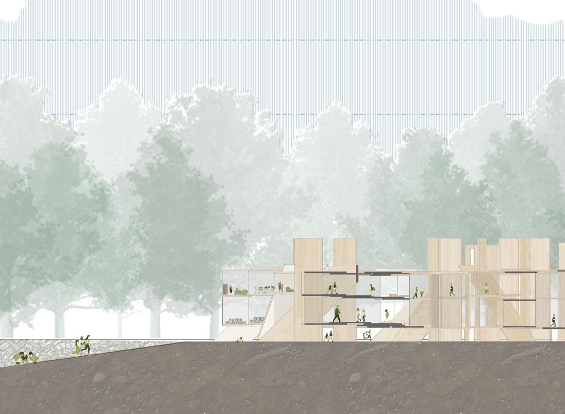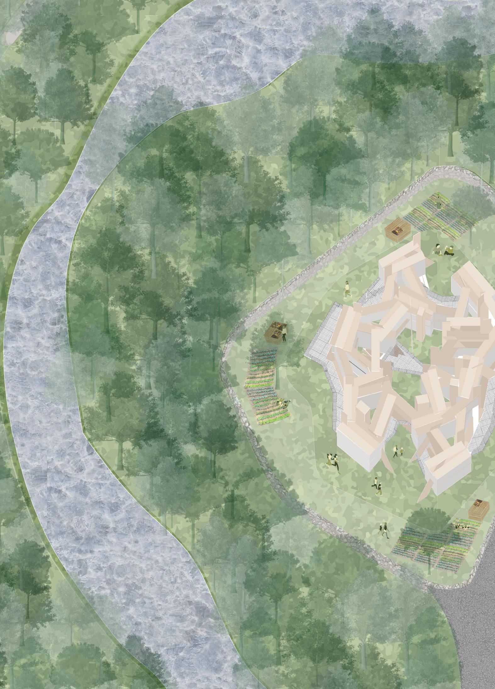 Sanctuary within the Trees transcends the traditional boundaries of what an elementary school is. Nestled within the Lake of the Woods Forest Preserve in Mahomet, Illinois, it allows students to learn while immersed in nature, and evokes a sense of security to push their learning further. Through transformable layouts and immersive circulation, education will not be confined within four walls, but it will meld seamlessly with its surrounding natural phenomena. The building itself will act as a teacher. Generating its own resources and managing its own waste, energy, food, and water, through community gardens, compost bins, and water harvesting receptors located on the ground floor plane. Sanctuary within the Trees will be a place where students learn not just in the school, but from it as well. Students will find going to school will offer them seclusion and security within the tree line and a unique learning opportunity.