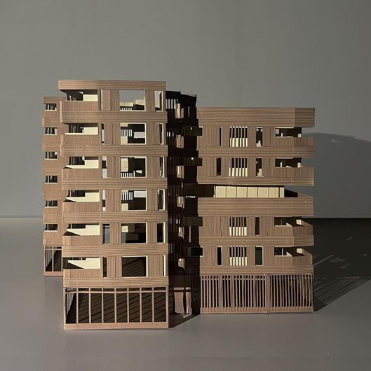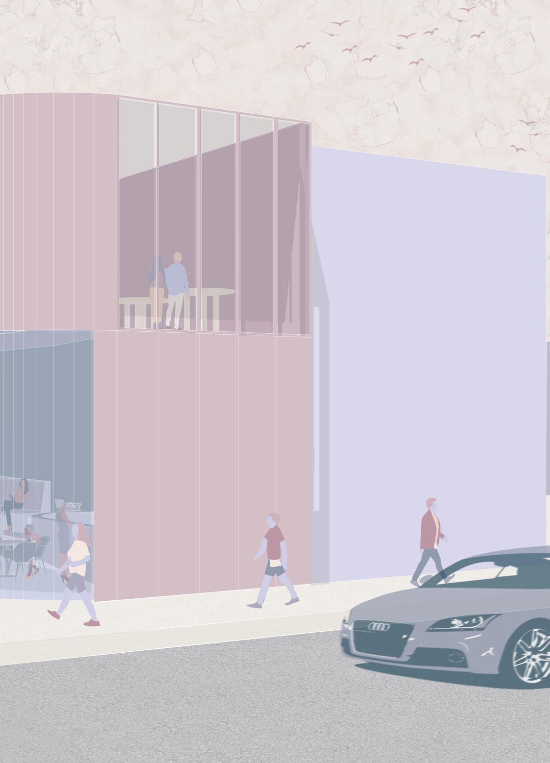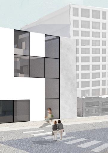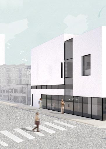 Stepping to the Sea is a twenty-unit apartment complex in Halifax, Nova Scotia, designed to balance flexibility in living spaces with a strong sense of community. The project emphasizes adaptability, with sliding partitions and doors allowing residents to redefine their spaces based on their evolving needs. Each unit is strategically placed on a corner, offering panoramic views of both the city and the sea, reinforcing a connection to the surrounding landscape. Community interaction is a core principle of the design with each residential floor featuring a shared gathering space, fostering opportunities for residents to connect, converse, and build relationships. The development also aligns with Halifax’s shift away from car dependency. A dedicated bike storage area provides easy access to cycling, connecting to the urban forest at the rear of the building. This integration encourages an active, outdoor lifestyle and promotes sustainable, nonmotorized transportation. By combining flexible living, community-driven spaces, and sustainable design, Stepping to the Sea creates a modern, adaptable, and socially connected residential experience in Halifax.