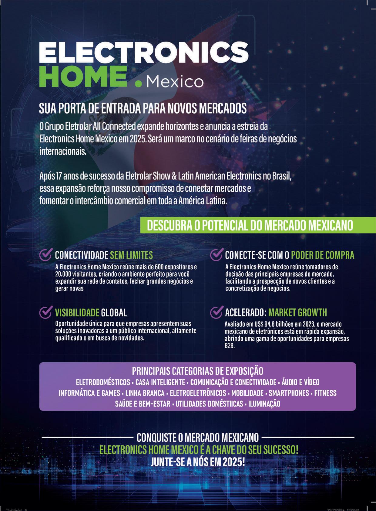 The year 2024 ends with a very positive balance for our segment, good news that encourages business in 2025. The first major event of the year will be the Brazil Mobile Convention, from March 21 to 23, at the Distrito Anhembi in São Paulo. Organized by the Grupo Eletrolar All Connected, it will feature innovative technology, workshops, and bring together CEOs, retailers, buyers, distributors, wholesalers, and mobile device manufacturers, offering a broad view of the challenges and opportunities of the current mobile market.