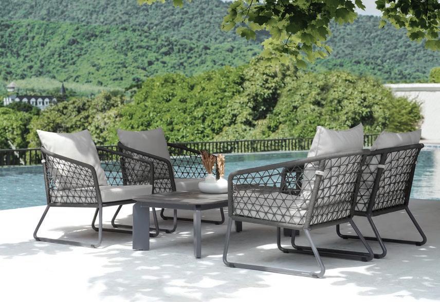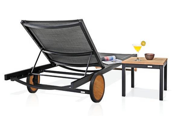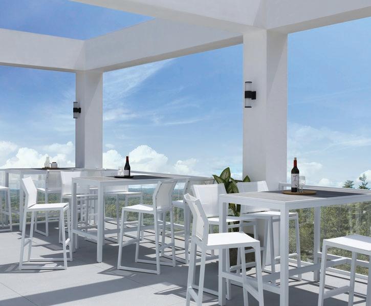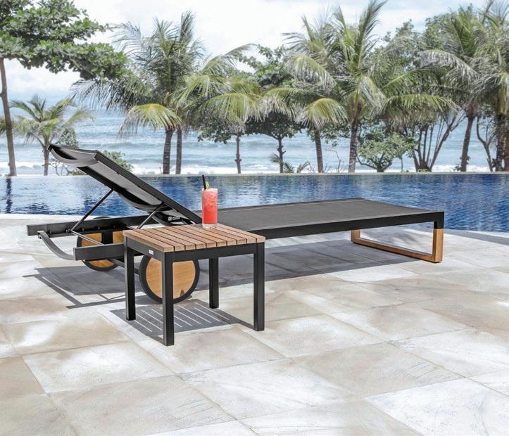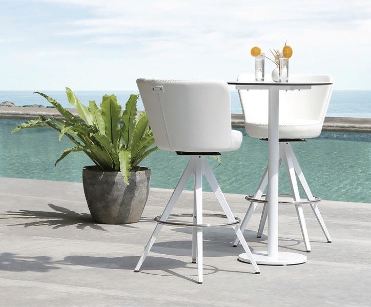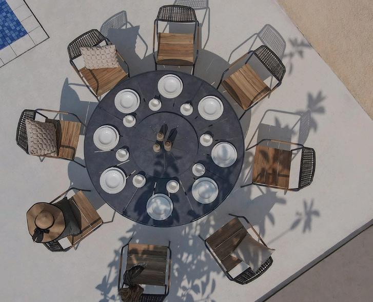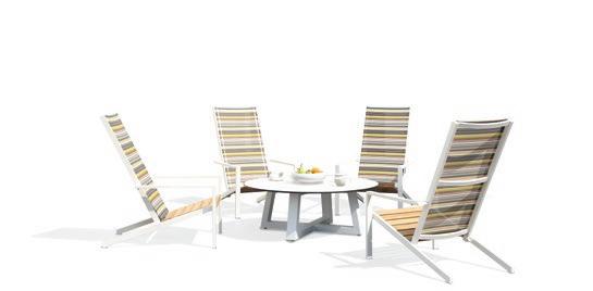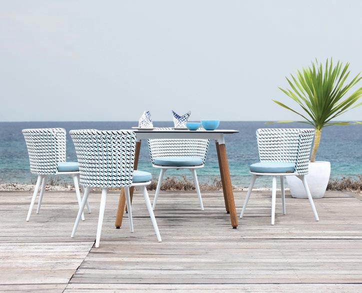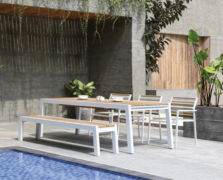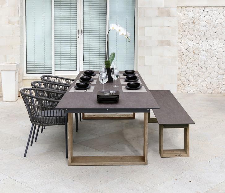 W 39.5” | 100 cm H 30” | 76 cm CH 26”-27” | 66-68.5 cm L 80.5” | 205 cm W 17.5” | 45 cm H 17.5” | 45 cm Aluminum White Top Recycled Teak Aluminum White Top Recycled Teak Anthracite Aluminum Top Slate FAST Program 2023 - DINING