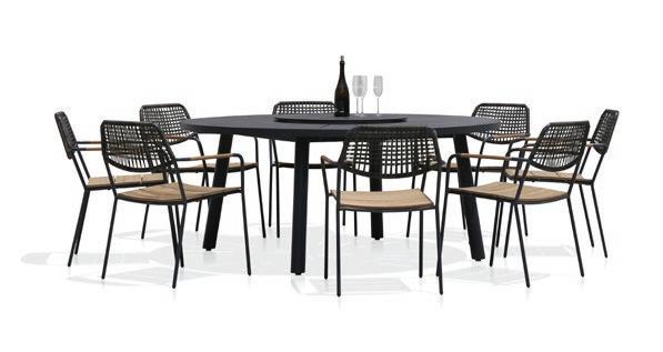 FAST Program 2023 - DINING MEIKA Round Table 71” | 180 cm (HPL) MG3235.F09.T54 Includes Built-In Rotating Tray Ø 71” | 180 cm H 31” | 79 cm CH 26.5” | 67 cm Stainless Steel Top Anthracite Volcanic Ash