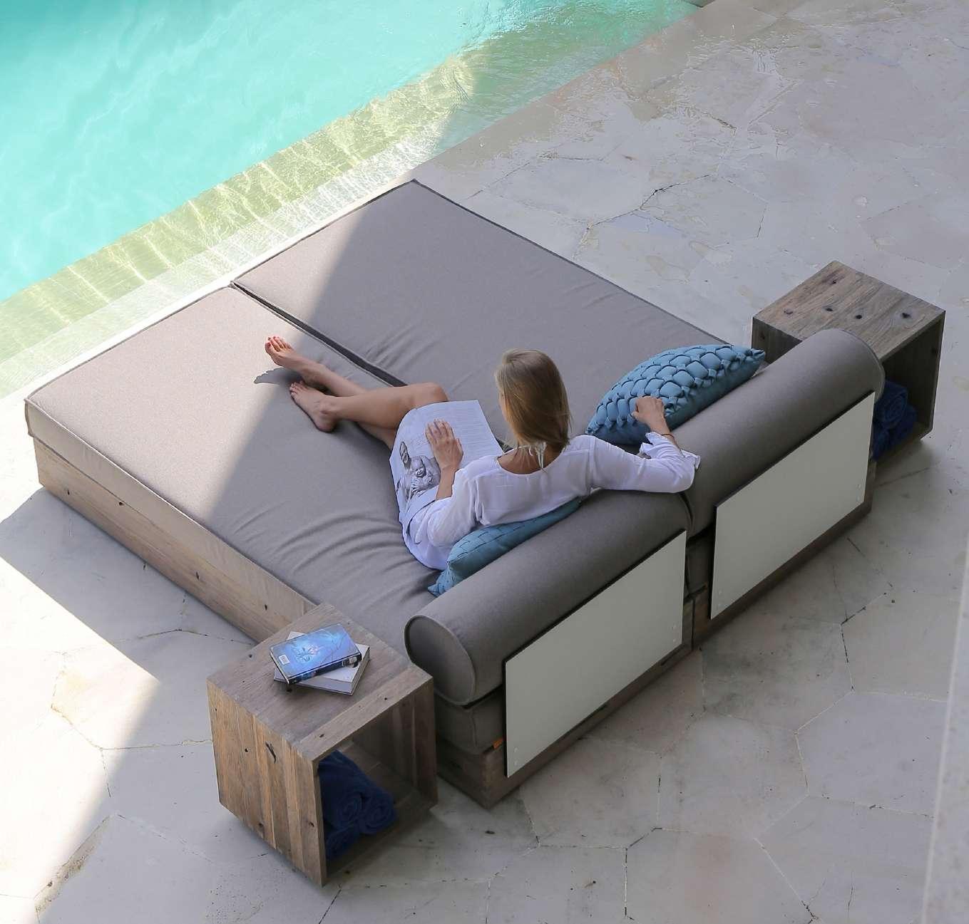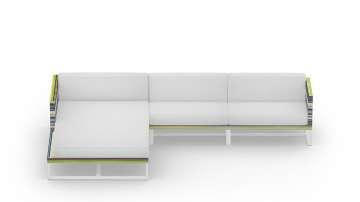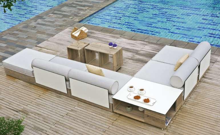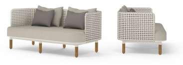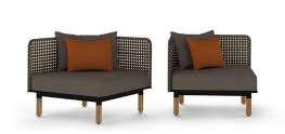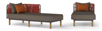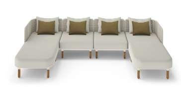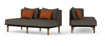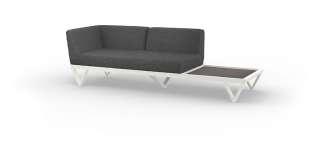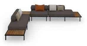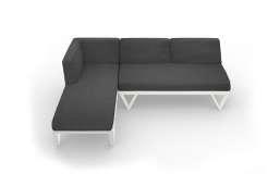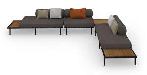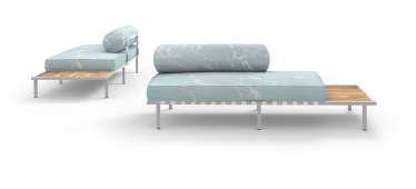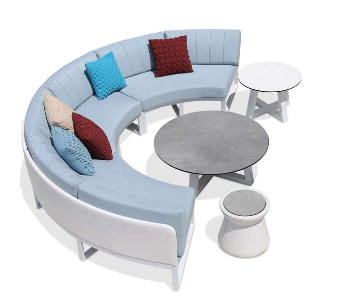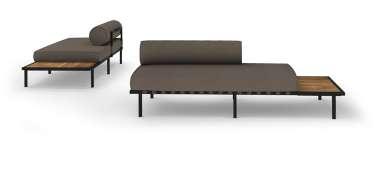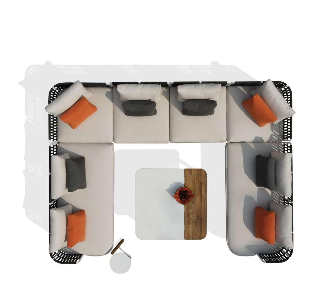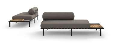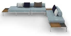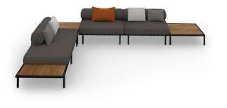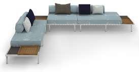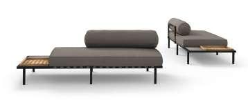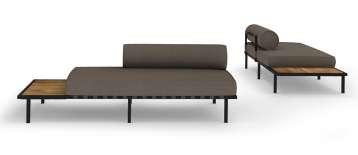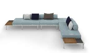 AIKO LOUNGE modules can accomodate 2 to 20 people. There are endless options to match the required level of leisure and relaxation. The AIKO base is 85 x 110 cm, and can be used in either deep-seating or comfort mode. The standard version features an armrest option and 3 choices of modular ottomans for corner pieces. Very practical rolling side tables are available in 2 dimensions, plus a versatile coffee table, that can also be used as either a corner or end component. The AIKO chaise is a stand alone lounger, can become a double daybed or may be included in any modular combinations. Sofa, L or U-shape configurations are all possibilities.