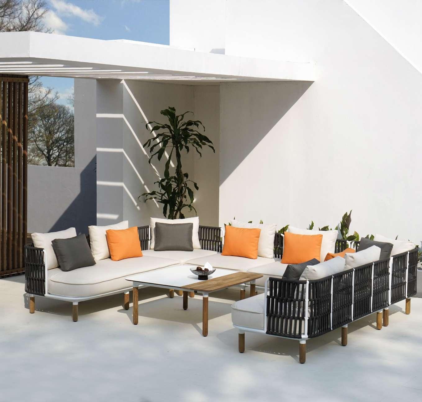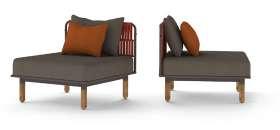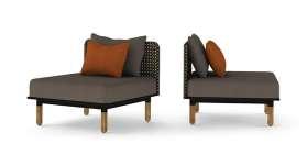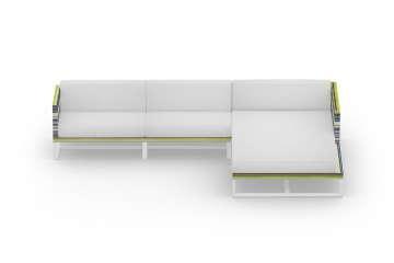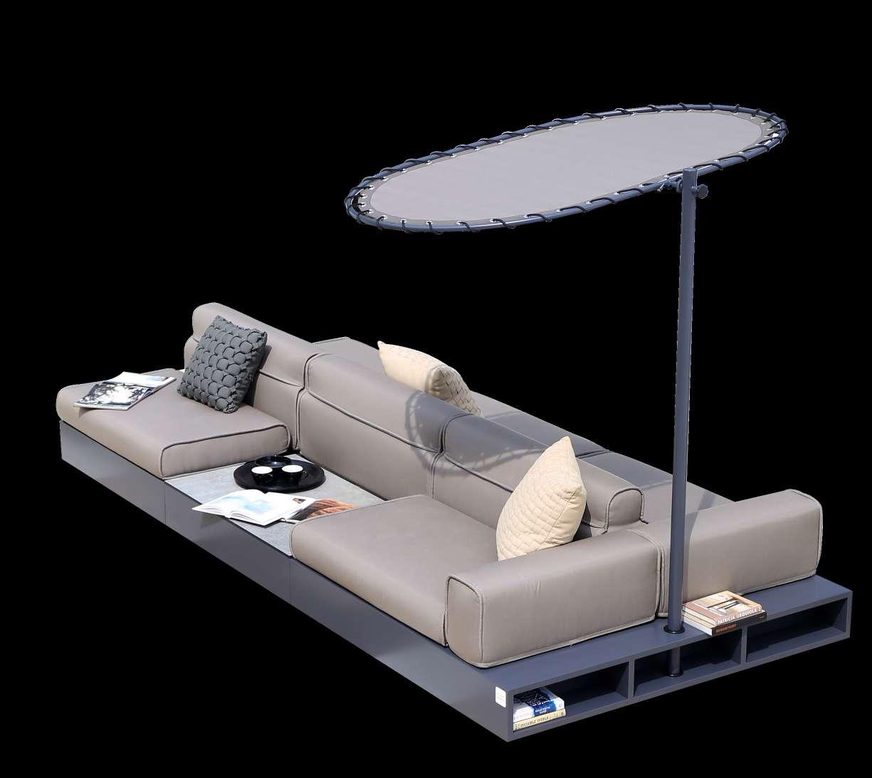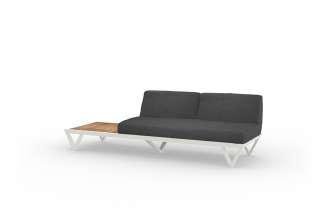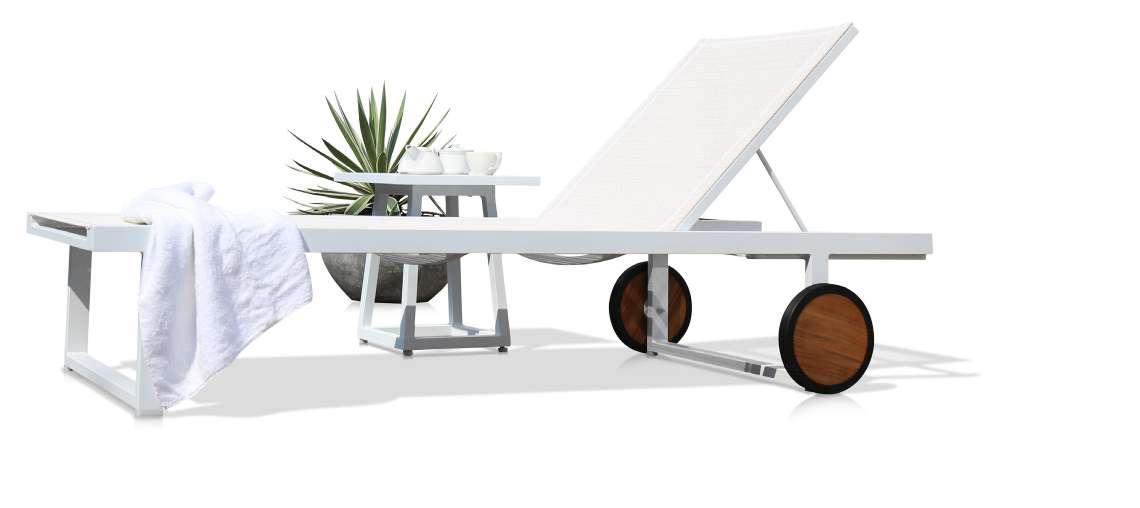 AIKO LOUNGE modules can accomodate 2 to 20 people. There are endless options to match the required level of leisure and relaxation. The AIKO base is 85 x 110 cm, and can be used in either deep-seating or comfort mode. The standard version features an armrest option and 3 choices of modular ottomans for corner pieces. Very practical rolling side tables are available in 2 dimensions, plus a versatile coffee table, that can also be used as either a corner or end component. The AIKO chaise is a stand alone lounger, can become a double daybed or may be included in any modular combinations. Sofa, L or U-shape configurations are all possibilities.